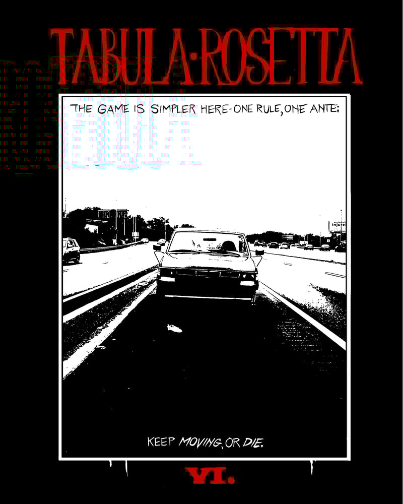 "Tabula Rosetta" is a tour-de-force in experimental and surrealistic storytelling that’s anything but easy to fit into any certain genre or predetermined category. Complex, weaving storylines that find themselves taking paths almost as unpredictable as the series of events surrounding its creation--copies of the original print run of the series have, among other things, been set ablaze en masse by the author herself, hidden throughout the United States, and pulled from production in their entirety only to re-emerge with entirely different content; characters and locations in the series have often warped their way into the real world through an ARG-like blending of fiction and fact--this series sets the mold for a new generation of underground comix.